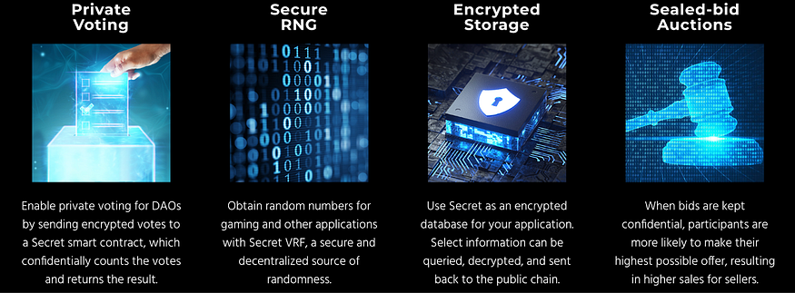 Paralelamente, a Secret continuará aprimorando as capacidades de sua Camada de Computação Confidencial. Eles estão atualmente no processo de integração de novas tecnologias de mensagens entre cadeias, como Wormhole, Union e Composable, que permitirão à CCL da Secret alcançar novas blockchains como Solana, Aptos e NEAR. Isso não apenas expandirá o alcance da Secret, mas também dará aos desenvolvedores mais opções ao projetar sua lógica entre cadeias. A Secret tem como objetivo fornecer várias ferramentas diferentes para tornar a experiência de desenvolvimento o mais fácil possível. Além disso, eles planejam continuar desenvolvendo novos exemplos de aplicativos entre cadeias e publicando documentações detalhadas e tutoriais para eles. Alguns exemplos futuros incluem livros de ordens criptografados para DeFi e dados confidenciais desbloqueáveis para NFTs.